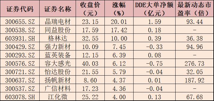 表:3月27日光刻膠板塊漲幅居前十個(gè)股一覽