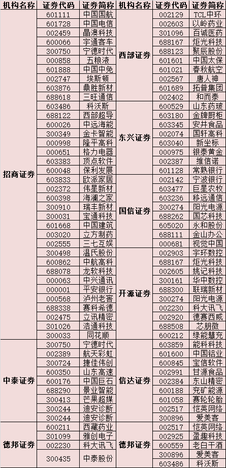 Wind數(shù)據(jù)顯示,截至3月30日下午16:00,已有招商證券、信達(dá)證券、中泰證券、開源證券、國信證券、東興證券等在內(nèi)的8家券商公布了4月份金股組合和策略,共有91只個(gè)股被推薦(不包括港股),科大訊飛、愷英網(wǎng)絡(luò)、陽光電源、寧德時(shí)代、愛美客、科沃斯、炬光科技等個(gè)股獲得券商集體看多。從券商的推薦情況來看,電子、計(jì)算機(jī)、醫(yī)藥生物、電力設(shè)備、傳媒等板塊中獲得券商推薦的個(gè)股最多。