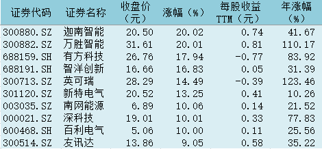 表:今日智能電網板塊內漲幅前十個股一覽