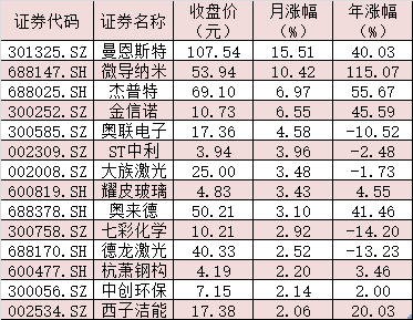 表:月內(nèi)累計(jì)漲幅超2%的鈣鈦礦電池概念股
