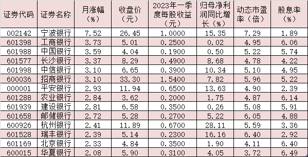 表:月內(nèi)累計(jì)漲幅超2%的銀行股
