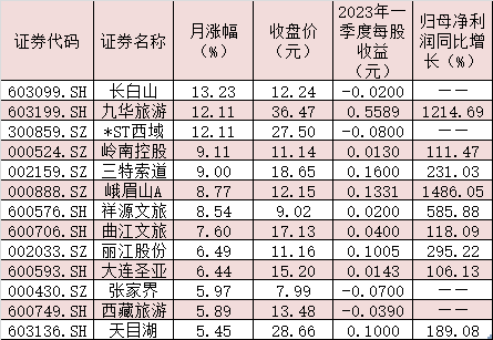 表:月內(nèi)累計(jì)漲幅超5%的旅游及景點(diǎn)股