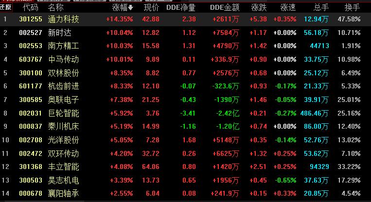 具體看,截至6月21日上午收盤(pán),減速器板塊再度活躍,漲幅居前達(dá)1.70%,資金凈流入達(dá)74.37億元。其中,通力科技、新時(shí)達(dá)、南方精工、中馬傳動(dòng)等概念股漲幅均超10%。