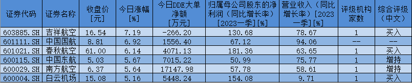 表:7月3日,航空機場板塊漲幅超5%個股一覽