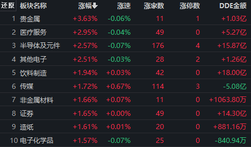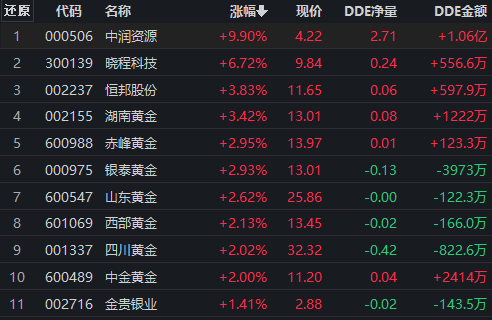 從早盤表現(xiàn)強(qiáng)勢(shì)的貴金屬行業(yè)看,交易中的11只成分股全線上漲,其中,有2只個(gè)股漲幅超5%。資金方面,有1.03億元大單資金凈流入該行業(yè),居12位。