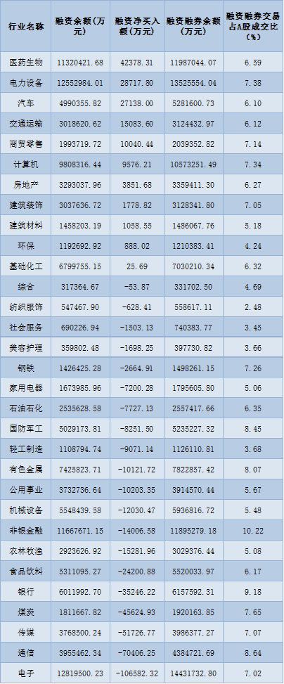 表:7月12日申萬(wàn)一級(jí)行業(yè)兩融交易情況
