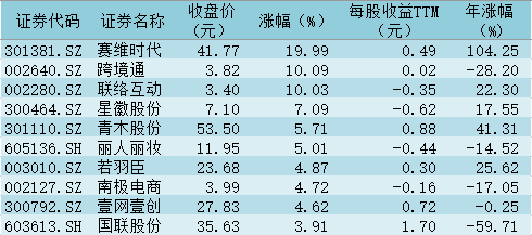 表:今日互聯(lián)網(wǎng)電商板塊漲幅前十個股一覽