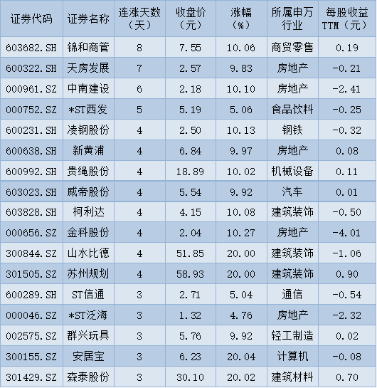 表:連續(xù)上漲3日且今日收盤漲停股一覽