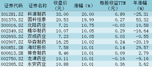 表:今日醫(yī)藥生物板塊漲幅前十個股一覽