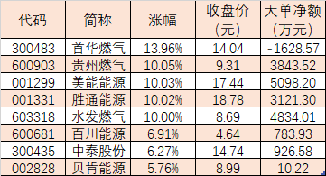 同時,市場主力資金開始布局天然氣概念股。8月10日,天然氣板塊整體呈現(xiàn)資金凈買入態(tài)勢,合計吸金5億元。其中,15只概念股大單資金凈流入超千萬元,廣匯能源、新潮能源、美能能源等3只概念股均受到5000萬元以上大單資金布局。