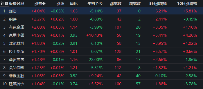 9月1日,上漲行業(yè)多于下跌行業(yè)。從31類申萬一級行業(yè)看,有22類行業(yè)上漲,占比70.97%,9類行業(yè)下跌。上漲方面,煤炭行業(yè)居首,漲幅達4.04%,鋼鐵行業(yè)緊隨其后,漲幅也超2%;有色金屬、家用電器、建筑材料、輕工制造、商貿零售等10類行業(yè)漲幅達到或者超過1%。下跌方面,通信跌幅居首,跌幅為1.14%。