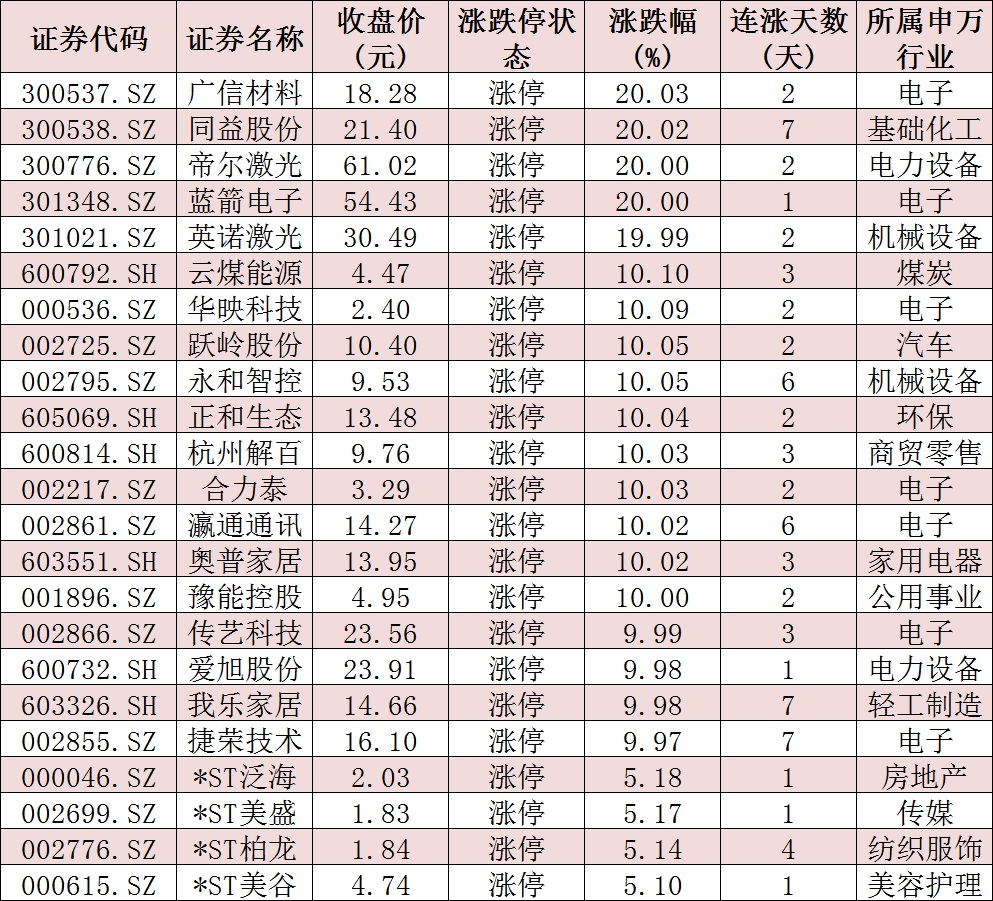 具體來看,今日,光伏概念股集體反彈,其中,BC電池板塊領(lǐng)漲,永和智控等6只概念股漲停;TOPCON電池板塊表現(xiàn)強(qiáng)勢,帝爾激光等3只概念股漲停;光刻膠股全天強(qiáng)勢,廣信材料、同益股份漲停;消費(fèi)電子概念股盤中異動,傳藝科技等4只概念股漲停;華為概念股繼續(xù)活躍,捷榮技術(shù)等3只概念股漲停;HJT電池、電子化學(xué)品、電子紙、鈣鈦礦電池、存儲芯片、光學(xué)光電子、廚衛(wèi)電器、電力等板塊表現(xiàn)活躍。房地產(chǎn)服務(wù)板塊領(lǐng)跌,租售同權(quán)、房地產(chǎn)開發(fā)、傳媒等板塊跌幅居前。