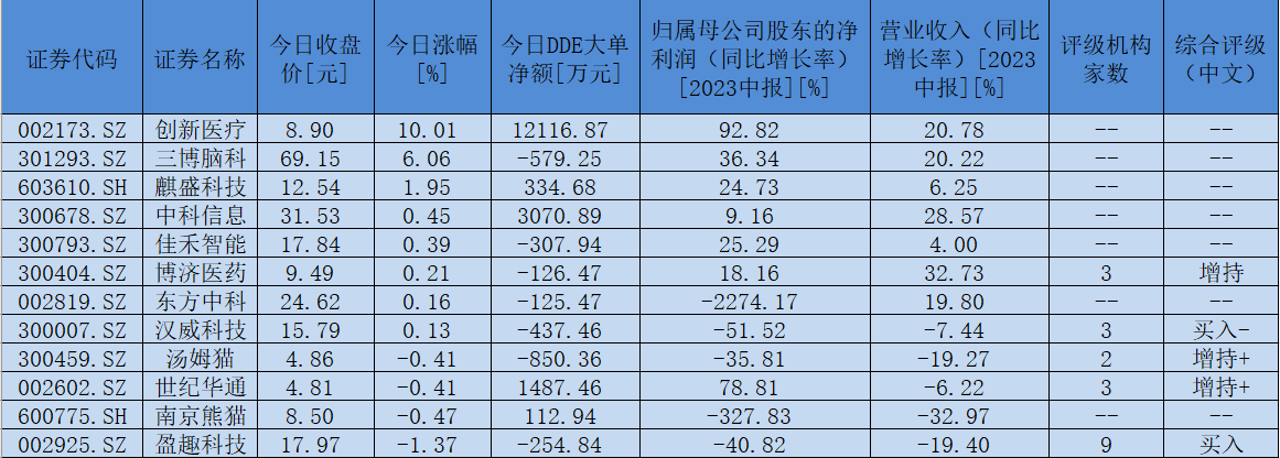 9月20日,同花順腦機(jī)接口概念板塊逆市上漲,截至收盤(pán),整體上漲1.39%,跑贏上證指數(shù)(跌0.52%)。板塊全部12只個(gè)股中有8只實(shí)現(xiàn)上漲,占比近七成。其中,創(chuàng)新醫(yī)療漲停。