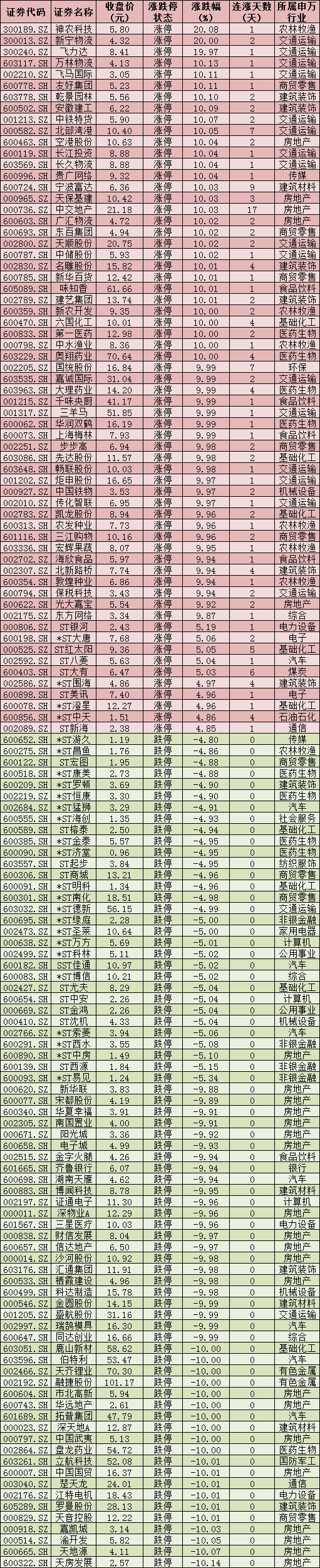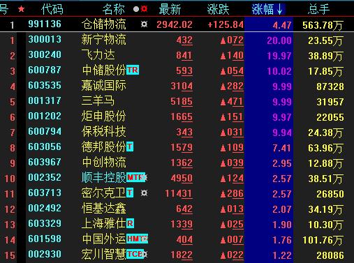 熱點二:倉儲物流漲逾4%7只概念股集體漲停