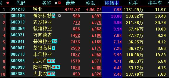 熱點一:農(nóng)業(yè)股逆市崛起種業(yè)板塊漲近8%