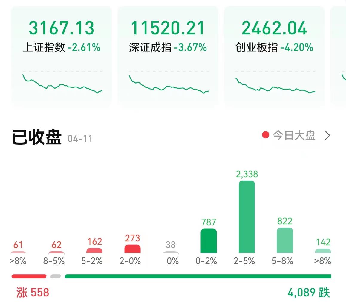 周一,A股三大指數(shù)集體跌超2%,截至收盤,上證指數(shù)跌2.61%報3167.13點,深成指跌3.67%報11520.21點,創(chuàng)業(yè)板指跌4.2%報2462.04點;兩市合計成交9637億元,北向資金凈賣出57.62億元。