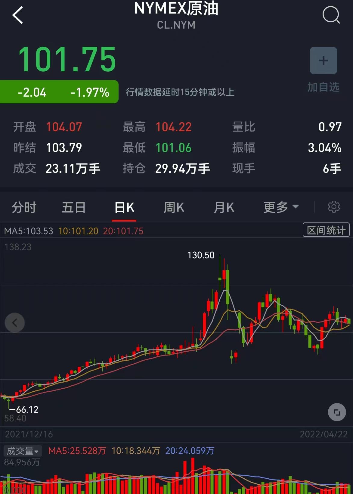 周五,國際油價全線下跌,美油6月合約跌1.97%,報101.75美元/桶。布油7月合約跌2.07%,報105.72美元/桶。本周,美油6月合約跌4.86%,布油7月合約跌5.35%。