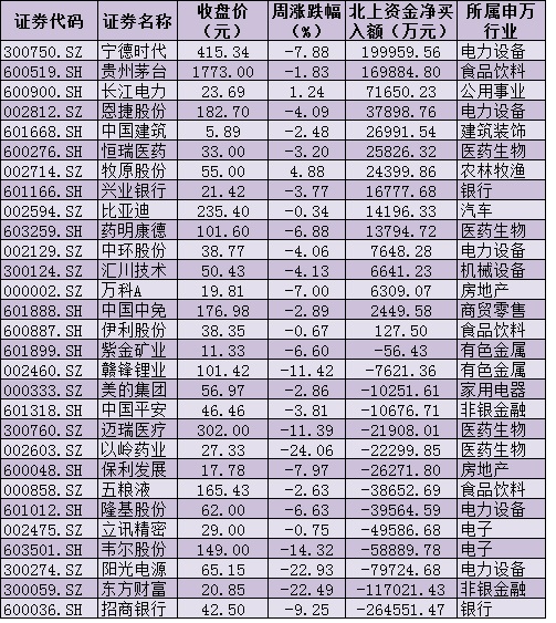 資金方面,北向資金本周累計凈買入金額達4.45億元。從前十大成交活躍股來看,本周,寧德時代、貴州茅臺等2只個股,北向資金凈買入金額均超10億元。另外,東方財富、招商銀行等個股遭北向資金凈賣出金額均超10億元。
