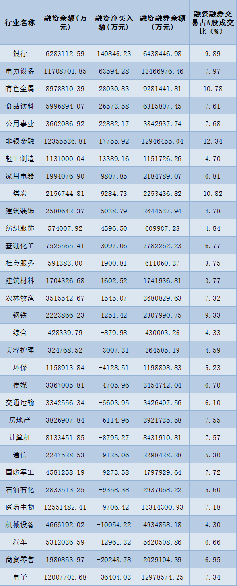 表:7月14日申萬一級行業(yè)兩融交易情況:
