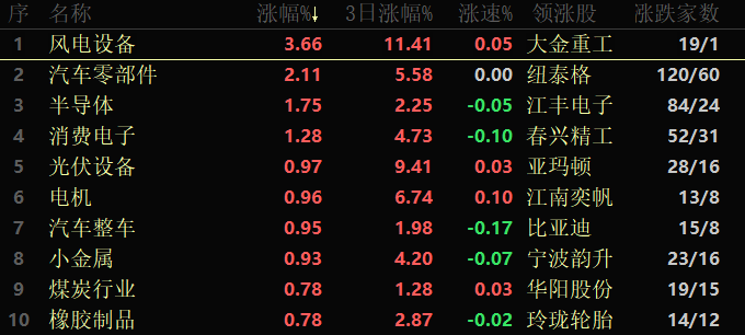 東方財富行業(yè)方面,截至7月15日11:30,86類行業(yè)中有25類上漲,占比29.07%。風(fēng)電設(shè)備行業(yè)居漲幅榜首,漲幅達(dá)3.66%,此外,汽車零部件行業(yè)漲幅也超2%;跌幅居首的行業(yè)是房地產(chǎn)開發(fā),下跌3.42%。