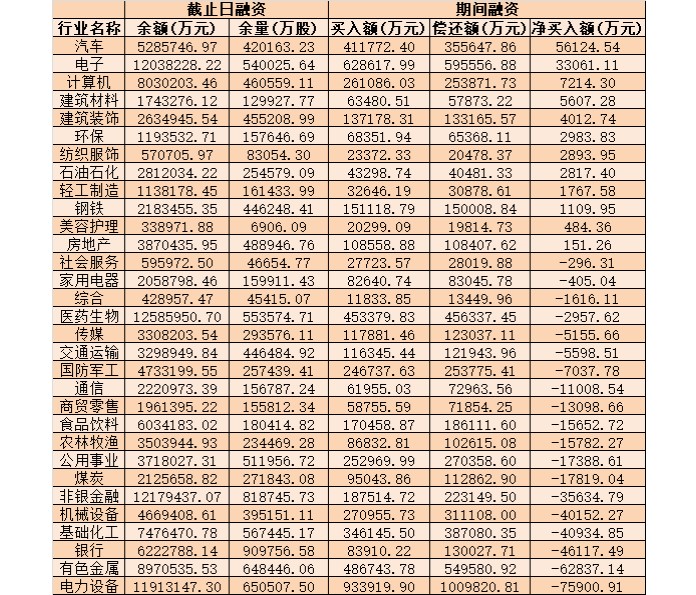 表:7月22日申萬一級行業(yè)兩融交易情況: