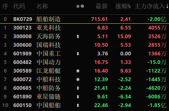 8月2日,東方財(cái)富行業(yè)中僅船舶制造上漲,漲幅達(dá)2.41%。行業(yè)10只交易中的個(gè)股,有5只上漲,其中,4只個(gè)股漲幅超5%。
