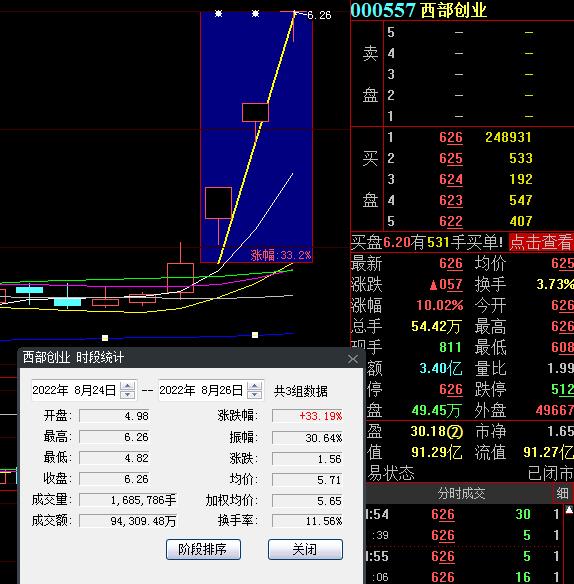 8月26日,熱門股西部創(chuàng)業(yè)再度漲停,截至收盤,報6.26元,實現(xiàn)3連板累計漲幅達33.19%。