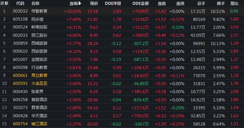 8月26日,社會服務(wù)行業(yè)漲幅居首達1.39%。其中,傳智教育報收于漲停,同慶樓、嶺南控股、麗江股份、西域旅游等個股漲幅均超5%。