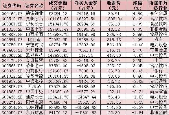 值得關(guān)注的是,8月26日,北向資金逆市呈現(xiàn)凈流入態(tài)勢,凈買入金額達51.51億元。從前十大成交活躍股來看,8月26日,贛鋒鋰業(yè)、貴州茅臺、伊利股份、中國平安等4只個股,北向資金凈買入金額均超2億元。