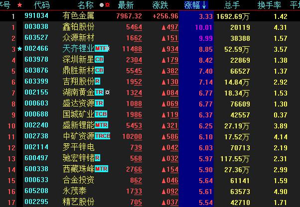 具體看,截至9月20日上午收盤,有色金屬板塊漲幅居首,達(dá)3.33%。其中,鑫鉑股份、眾源新材等2只個(gè)股漲停,天齊鋰業(yè)和深圳新星等個(gè)股漲幅均超8%。