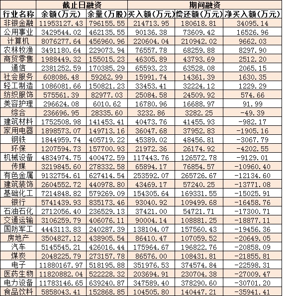 表:9月19日申萬一級(jí)行業(yè)兩融交易情況: