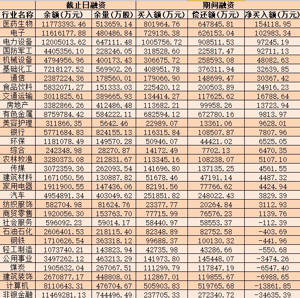表:11月7日申萬一級行業(yè)兩融交易情況: