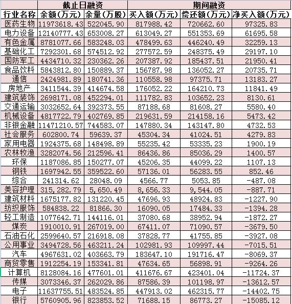 表:11月9日申萬一級(jí)行業(yè)兩融交易情況:
