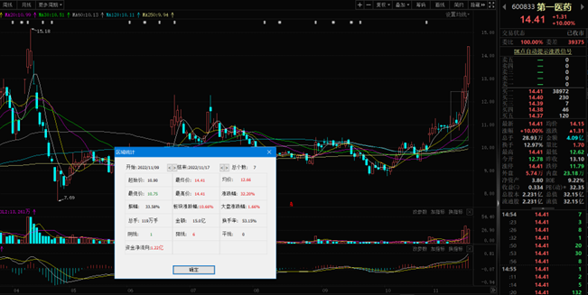 11月17日,第一醫(yī)藥以14.41元封漲停板報收,漲幅達10.00%。該股自11月9日以來,截至11月17日已連續(xù)7個交易日上漲,累計漲幅達32.20%。該股最新A股總市值達32.15億元,A股流通市值32.15億元。