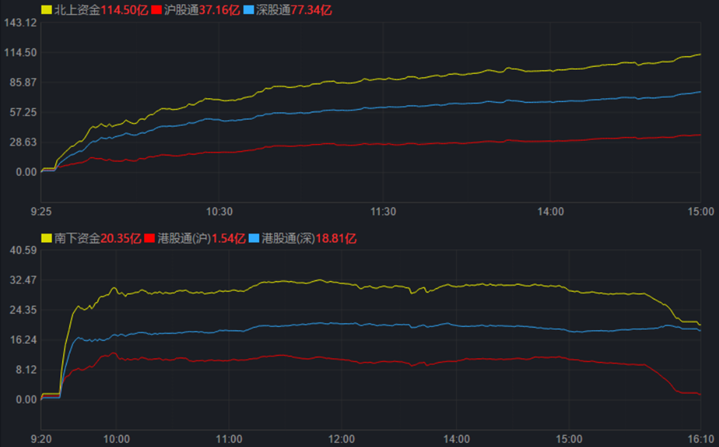 截至12月1日收盤,上證指數(shù)漲0.45%,收報3165.47點,盤中最高沖至3198.41點,距3200點一步之遙;深證成指漲1.40%,收報11264.16點,創(chuàng)業(yè)板指漲1.53%,收報2381.18點;滬深兩市合計成交額10583.5億元,較前一交易日增長13.60%,時隔11個交易日后,兩市成交再上1萬億元;北向資金凈買入114.50億元;總體來看,A股上漲個股為3218只,下跌個股1620只。
