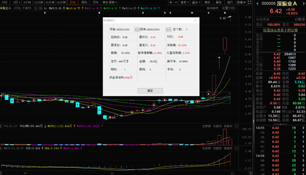 12月1日,深振業(yè)A以6.42元封漲停板報收,漲幅達9.93%。該股自11月23日以來,截至12月1日已連續(xù)7個交易日上漲,累計漲幅達57.35%,該股最近4個交易日均以漲停價報收。該股最新A股總市值達86.67億元,A股流通市值86.67億元。