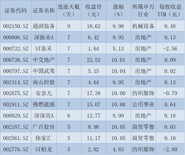 表:連續(xù)上漲5天且今日收盤漲停股一覽