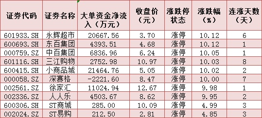 表:商貿(mào)零售行業(yè)中10只漲停股情況: