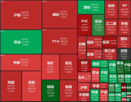 海外原油價(jià)格再度明顯下跌,WTI原油下跌10.9%,有色、黑色、農(nóng)產(chǎn)品各品種價(jià)格均漲跌互現(xiàn)。對(duì)比來(lái)看,LME鋅漲幅領(lǐng)先(3.9%)、SHFE螺紋鋼(3.6%)、DCE鐵礦石(3.4%)、CBOT大豆(2.9%)、COMEX白銀(1.4%)緊隨其后。從下跌幅度來(lái)看,DCE焦煤跌幅領(lǐng)先,達(dá)到15.1%,其后是ICE布油(-10.1%)、CBOT小麥(-3.6%)、LME鋁(-3.4%);COMEX黃金價(jià)格則基本持平。