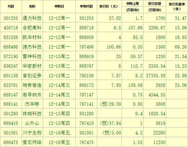 新股方面,根據(jù)發(fā)行安排,A股市場(chǎng)下周將有14只新股申購(gòu)。