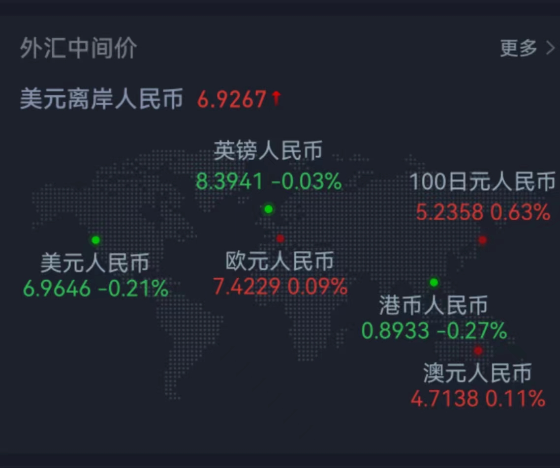 上周五在岸人民幣兌美元夜盤23:30收報6.9000。人民幣兌美元中間價報6.9646,調(diào)升147個基點,上周累計調(diào)升164個基點,全年累計調(diào)貶5889個基點。交易員稱,市場對疫情還是有擔(dān)憂的,短期情緒受抑制。
