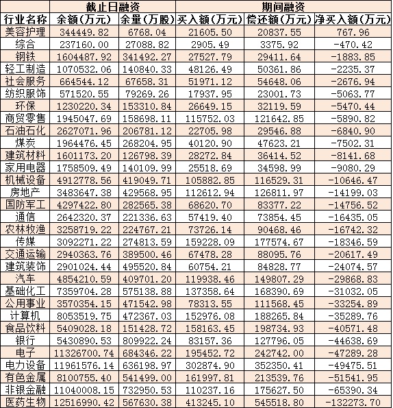 表:12月30日申萬一級行業(yè)兩融交易情況: