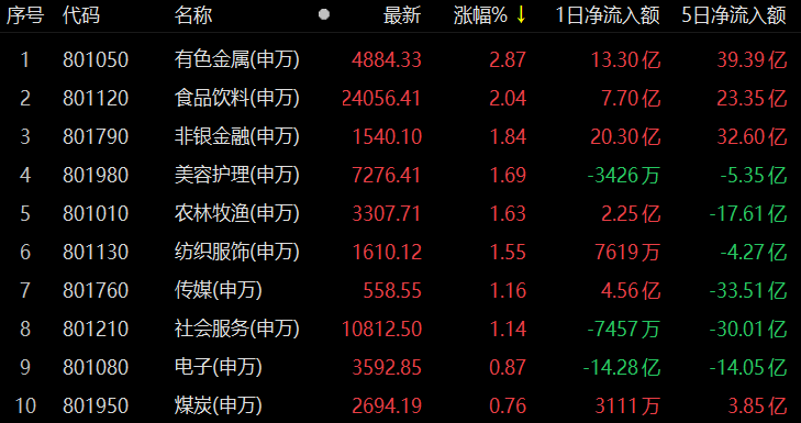 從概念板塊來看,基本金屬板塊領(lǐng)漲,漲幅達2.98%,雞肉概念、黃金概念、汽車一體化壓鑄、托育服務(wù)、職業(yè)教育等板塊表現(xiàn)強勢漲幅均超2%;6G概念領(lǐng)跌,跌幅達1.28%。