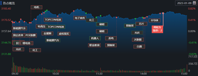 1月9日,A股三大指數(shù)高開震蕩,滬指連續(xù)6個交易日上漲,5日均線已上穿有牛熊分水嶺之稱的120日均線,技術(shù)面更趨強勢。截至收盤,上證指數(shù)漲0.58%報3176.08點;深證成指漲0.73%報11450.15點,創(chuàng)業(yè)板指漲0.75%報2440.374點,A股合計成交額8071.65億元,較前一交易日縮減3.69%,北向資金凈買入77.00億元??傮w上看,A股個股漲少跌多,有2969只上漲,1786只下跌。