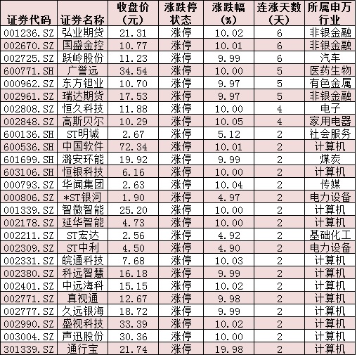 表:連續(xù)上漲2日且今日收盤(pán)漲停個(gè)股情況: