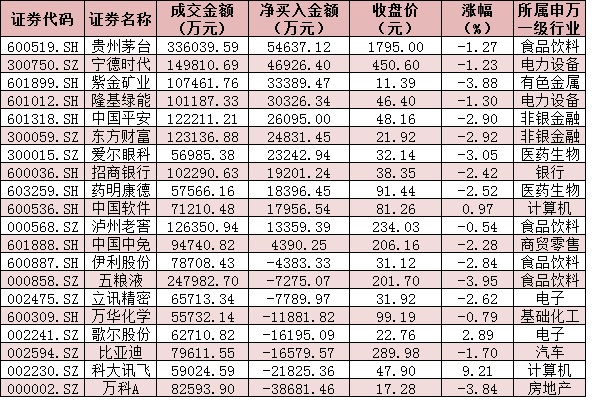 表:今日滬、深股通前十大成交活躍股交易情況: