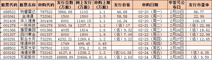 下周(2月20日-24日)11只新股發(fā)行情況