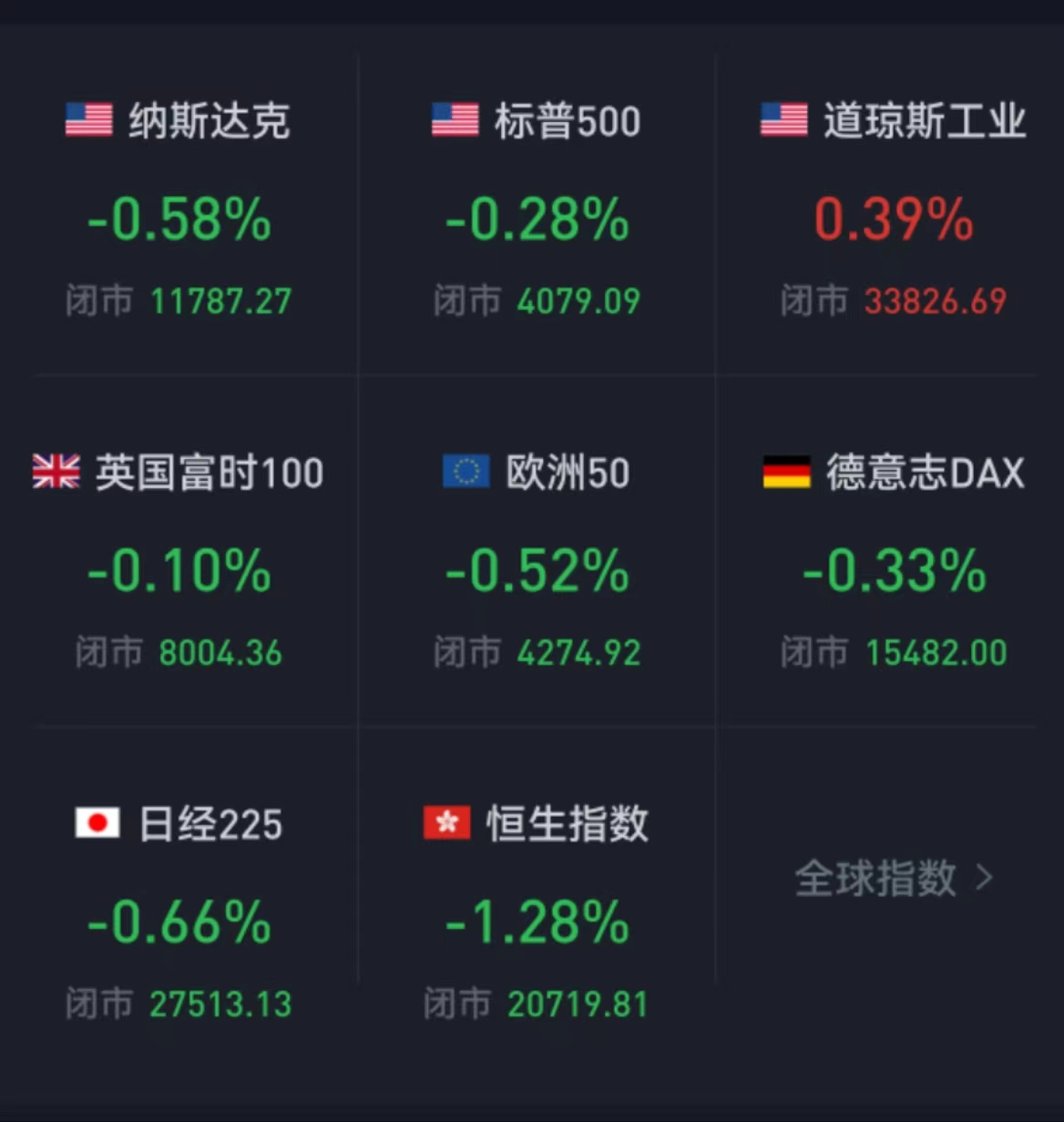 周五,美國三大股指收盤漲跌不一,道指漲0.39%報(bào)33826.69點(diǎn),標(biāo)普500指數(shù)跌0.28%報(bào)4079.09點(diǎn),納指跌0.58%報(bào)11787.27點(diǎn)。本周,道指跌0.13%,標(biāo)普500指數(shù)跌0.28%,納指漲0.59%。