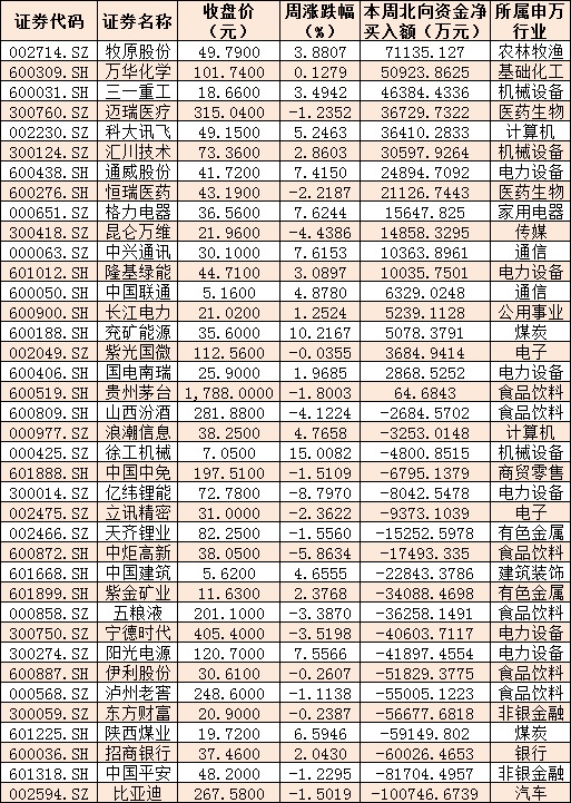 本周滬、深股通前十大成交活躍股交易情況