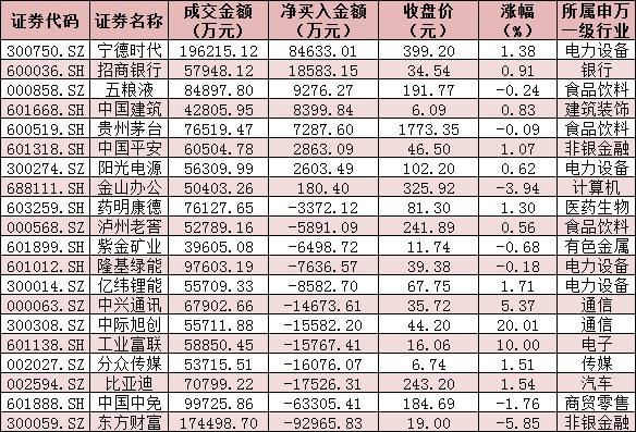 表:今日滬、深股通前十大成交活躍股交易情況: